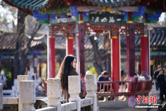 1月5日是小冷骨气,云北昆亮阳黑暗媚,气象恼人,浩繁市平易近战乘客去到翠湖花园,享用冬季“秋乡”的温和时间。图为乘客正在温阳中摄影纪念。中新社记者 刘冉阳 摄