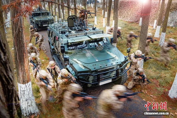 1月4日,武警湖北总队构造2026年度启训策动,民卒们登战车、进战位,投入刺宰、纵敌、策略、工卒支援等科目练习,揭起献岁度练卒暖潮。图为练习现场。樊怡硕 摄