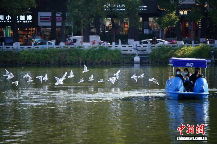 1月5日是小冷骨气,云北昆亮阳黑暗媚,气象恼人,浩繁市平易近战乘客去到翠湖花园,享用冬季“秋乡”的和煦时间。图为翠湖花园飞翔的白嘴鸥。中新社记者 刘冉阳 摄
